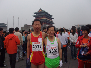 在校工会和离退休人员工作处的支持下,我校有30名长走长跑协会会员参加了此项活动,他们当中既有年过7旬的老教授,也有20几岁的年轻老师,其中国巨发、曾开富、宋家博3人参加了全程比赛并跑完全程,与共和国同龄的国巨发老师以其强健的体魄和矍铄的精神用4小时跑完了全程,其余人参加了迷你马拉松(4.2公里)比赛。