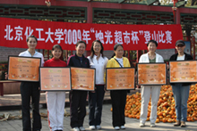 在整个比赛中,运动员们你追我赶,奋力登攀,工作人员及各分会领队热心服务,整个比赛紧张有序。机电学院顾国庆老师和文法学院的丛林老师各自在男女比赛中率先到达终点,在上星期参加2009北京国际马拉松比赛的国巨发老师依然精神抖擞,紧随顾国庆老师后到达。在终点,运动员们纷纷合影留念。在颁奖仪式上,校工会专职副主席靳万民对本次活动进行了总结并宣布了比赛成绩,随后由校工会兼职副主席段成红老师和登山协会秘书长王和君老师向获得男女团体第一名的机电学院和文法学院颁发了冠军奖杯,图书馆直属支部书记兼分工会主席张明德老师和校工会常务副主席苏建茹老师向获得男女团体比赛一至六名颁发了奖状。男子组一至六名依次为:机电学院、理学院、图书馆、经管学院、材料学院、生命学院;女子组一至六名依次为:文法学院、机电学院、信息学院、理学院、继教学院、校机关。