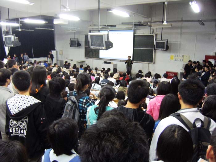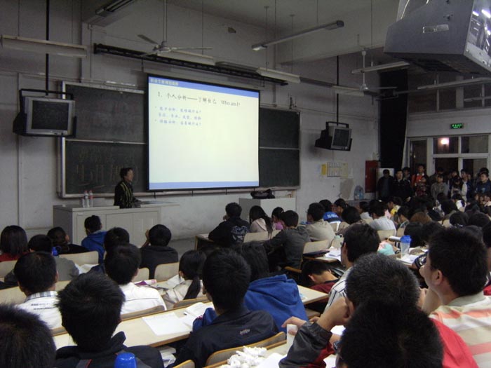 2009年10月22日晚6点,在北校区北阶一进行了一场为时三小时的职业生涯规划讲座,本次讲座是我校职业生涯规划大赛赛前培训第一讲,我校文法学院教授哈力群老师受毕业生就业中心邀请担任主讲人,向低年级学生系统的介绍了职业生涯规划的有关知识,有近三百人参与了讲座。