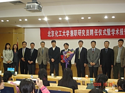 10月26日上午10点,在我校会议中心多功能厅举办了“北京化工大学兼职研究员聘任仪式暨学术报告会”。副校长付志峰教授、人事处李文忠处长、国际交流与合作处耿海萍处长、理学院院长李殿卿教授、理学院副院长杨屹教授、清华大学林金明教授等近200名师生出席了聘任仪式,会议由理学院魏芸教授主持。聘请日本岛津公司海外部长兼全球应用中心主任Dr. Yuki Hashi为我校兼职研究员,并由Dr. Yuki Hashi及京都工艺纤维大学Prof. Nobuo Tanaka两位专家为大家做了精彩的学术报告。