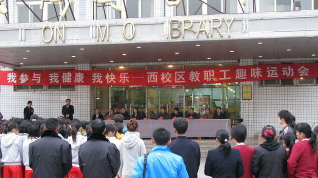 10月30日下午,西校区教职工“趣味运动会”在西校区篮球场隆重召开,参加比赛人员达150多人。王贵副校长、王同奇副书记、工会副主席苏建茹、靳万民、机关党总支书记阎继善、以及技术学院、后勤集团、产业、基建处、保卫处的领导参加了本次“趣味运动会”。这次运动会的主题是“我参与、我健康、我快乐”。趣味运动会由西校区管理办公室主任胡清翰主持。