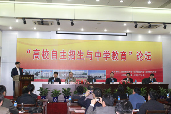 本次论坛以“高校自主招生与中学教育”为主题,邀请了教育部学生司本专科招生处领导周利明做主题报告,河北省石家庄一中,河南省郑州一中,山东省泰安一中,浙江省金华第一中学,辽宁省锦州市锦州中学5所中学校长代表发言。会议就高校招生与中学教育的融合、尤其是高校自主招生与中学教育的衔接等热点议题进行了深入研讨,会后代表们参观了5所高校。
