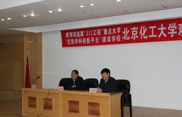 31日下午,与会代表来到我校,参观了化工资源有效利用国家重点实验室、有机材料表面工程研究室、先进弹性体材料研究中心,对我校科研所取得的成绩做出了充分的肯定。在会议中心,王子镐校长为与会代表致欢迎词,付志峰副校长对学校情况做了简要介绍,招生办主任赵静对我校招生情况、尤其是自主招生情况做了详细的介绍。