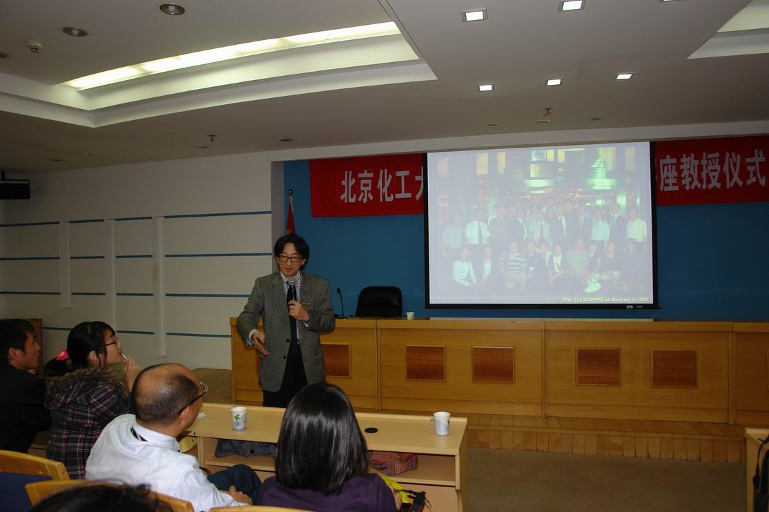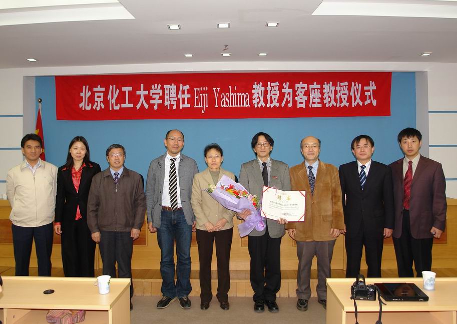 首先由材料学院院长杨万泰介绍了Eiji Yashima教授的履历及研究成就,之后校党委书记王芳教授为Eiji yashima教授颁发客座教授聘书,学生代表为Eiji Yashima教授献花并佩戴校徽。随后,王芳书记代表学校对Eiji Yashima教授聘任为我校客座教授表示热烈的欢迎和衷心的感谢。最后,Eiji yashima教授发表了热情洋溢、风趣幽默的讲话,他表示希望能够为化工大学做点实际工作,并会为我校科研的进一步发展做出应有的贡献。