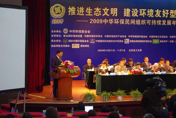 2009年10月31日至11月1日,第四届中华环保民间组织可持续发展年会在我校隆重召开。本次活动由中华环保联合会主办,北京化工大学协办,同时得到了来自联合国环境规划署、中华环保基金会等单位的支持。我校党委副书记兼副校长任新钢出席了大会开幕式并致词。
