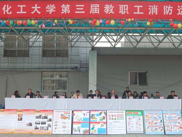 随已过了金秋十月,然而初冬的雾日依然暖阳高照,北京化工大学第三届教职工消防运动会于11月6日在2009年全国第18个“119”消防宣传日到来之际召开了,我校各学院、校机关、图书馆、投资集团、后勤集团等13个单位600余人参加了以“人人参与消防,共建平安校园”为主题的消防运动会。和平街街道办事处、公安局文保处、亚运村消防中队、和平街派出所以及兄弟院校的相关领导出席了运动会。