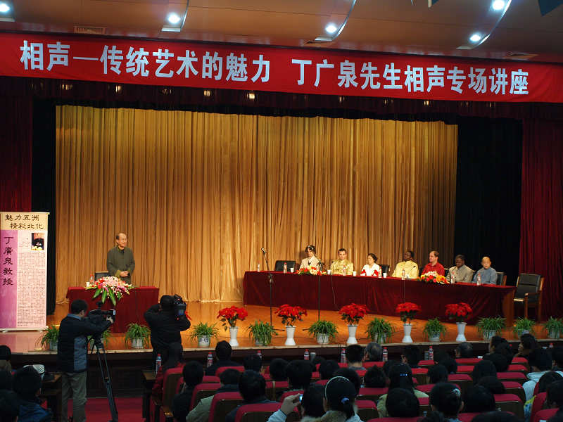 11月12日下午五点半,作为我校首届国际文化节活动之一,由丁广泉先生及其中外弟子们举办的“相声—传统艺术的魅力专场讲座”在观众们经久不息的掌声中精彩落幕。