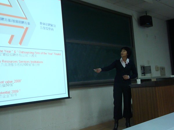 在简要介绍了科锐国际之后,安然女士重点讲解了校园招聘的一般流程、如何准备校园招聘、如何通过简历筛选关及面试中应注意的事项。她认为,求职者首先要明晰了解招聘企业的企业文化、招聘计划以及岗位需求,在此基础上根据所想获取的职位制作与此适应的简历。在笔试的环节应做到字迹工整,把握好对试卷的理解并正确的进行书面语言表达。针对不同的面试方式,应准确把握所要考察的能力和素质。她结合大量的案例和经典的面试问题详细讲解了面试时的注意事项。最后,安然女士针对同学们求职中遇到的困惑和问题耐心的一一解答。讲座在同学们热烈的掌声中圆满结束。