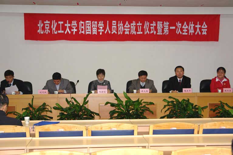 会议首先介绍了协会章程及委员会成员的产生过程并宣读了北京化工大学归国留学人员协会首届委员会委员名单,随后经北京化工大学归国留学人员协会首届委员会选举的会长谭天伟教授做了讲话,他感谢了出席本次会议的上级单位领导对北京化工大学的支持,并指出,北京化工大学归国留学人员协会是一个为全校师生服务的群众性组织,尤其是在学科建设、人才引进和培养、国际化能力加强等方面要起到促进和推动的作用。接着,教育部留学基金管理委员会杨新育副秘书长、教育部留学服务中心回国处刘剑波处长、北京市侨联副主席、北京市归国留学人员联合会主席陶庆华先生、欧美同学会端木美副会长分别致辞对北京化工大学归国留学人员协会的成立表示了祝贺。会议上宣读了国家人力资源和社会保障部专业技术人员管理司当日给我校归国留学人员协会的成立发来的贺信。