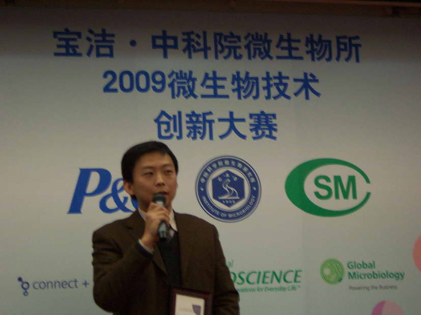 我校生命科学与技术学院陈畅老师、研究生刘春巧、付岩帅、本科生陈毅明4人组成的参赛小组,在“亲近生活,美化生活”2009微生物技术创新大赛中夺得最高奖——铂金奖,为我校课外科技竞赛活动再添辉煌。该赛事由宝洁公司发起,中国科学院微生物研究所、中国微生物学会联合举办,目的是为响应国家建立创新型社会的号召,支持中国微生物学研究技术的产业化,促进微生物技术在消费品行业的应用;为加强企业与中国科技界的密切合作,实现寻求技术创新型人才的目标。竞赛自今年5月份启动以来,得到了全国各大高校、科研单位的广泛关注,共有155件作品参加,主要涉及抗菌技术、益生菌/益生素技术、微生物快速检测技术等领域。经过两轮专家评审,共选出18项进入最终评审阶段,经过答辩和展示,最终决出铂金奖1项,金奖2项,银奖4项。11月24日,颁奖典礼在北京举行,中科院微生物所党委书记、副所长、宝洁公司北京技术中心总经理、大中华地区联系发展部经理等出席了颁奖仪式。(生命学院供稿)