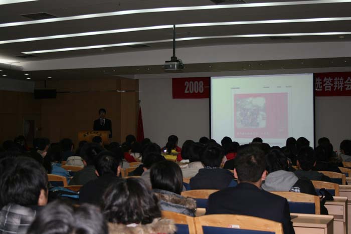 11月24日晚6点,我校2008--2009学年红旗班集体评选答辩会在会议中心多功能厅隆重举行。学生工作办公室主任罗伟老师、校团委书记邹立娜老师、各学院分团委、团总支书记出席了本次评选答辩会并担任评委。