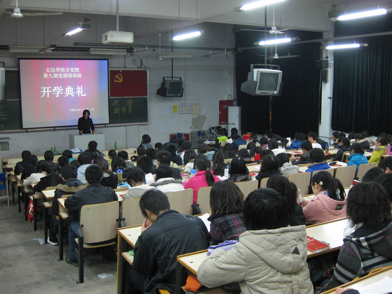 12月1日晚六点,文法学院分党校第九期党课培训班开学典礼在北阶一隆重举行。校党委组织部部长毛立新、文法学院党总支书记刘玲、副书记彭拴莲以及文法学院北校区全体辅导员出席了本期开学典礼。