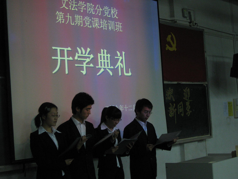 典礼上,第八期党课优秀学员代表陈思同学作了发言,向新学员们介绍了党课学习中应注意的问题;第九期党课学员易明丽同学代表新学员们向党总支做出了保证,一定好好学习,遵守纪律,端正态度,为早日成长为一名合格的共产党员不懈努力。