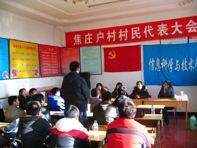 焦庄户村是顺义区施行整体推进村庄建设的先锋力量。多年来,在新农村建设办公室“五项工程”和“三个起来”政策的指导下,这个依农而生的村庄无论是经济发展还是村民生活质量都在蒸蒸日上。活动中,同学们首先与“大学生村官”进行了交流座谈会。会上,两位年轻的村干部助理就焦庄户村的基本情况、工作日程和发展目标等做了详尽的介绍。党支部的同学也围绕村镇发展这一话题踊跃地提问交流,同时提出了自己的想法和建议。