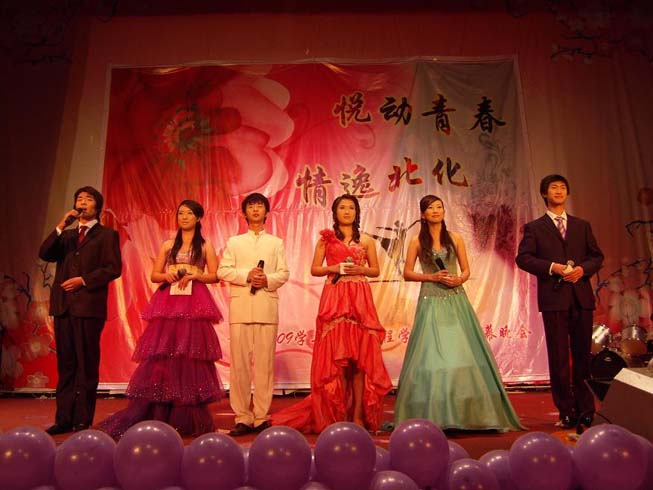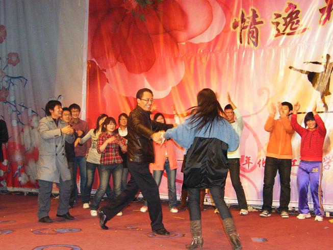 院长陈建峰老师被这种浓郁的活动氛围深深的感染,即兴表演了一段优美的交谊舞,将晚会推向一个高潮。院长代表学院充分肯定了学院学生工作所取得的成绩,并向长期坚持在学生工作战线的师生表示了亲切的问候,并表示愿意带领全院教师为同学们打造最绚丽的舞台,希望同学们在这个舞台上尽展化院学子的风采。晚会还融入了低年级自行设计的班级文化衫展示和高年级专项奖学金获得者的才艺展示内容,在突显学生创新能力的同时,加强了教育引领和导向的元素。北区管委会主任郭奋老师的一曲《滚滚长江东逝水》、商云龙老师的《同桌的你》、辅导员老师的一曲《童年》更是唱出了浓浓的深深的化院师生情,将热烈的气氛再次助燃。院周晚会伴随着歌曲《北化欢迎你》圆满结束,精彩纷呈的化学工程学院院周也成功落幕。