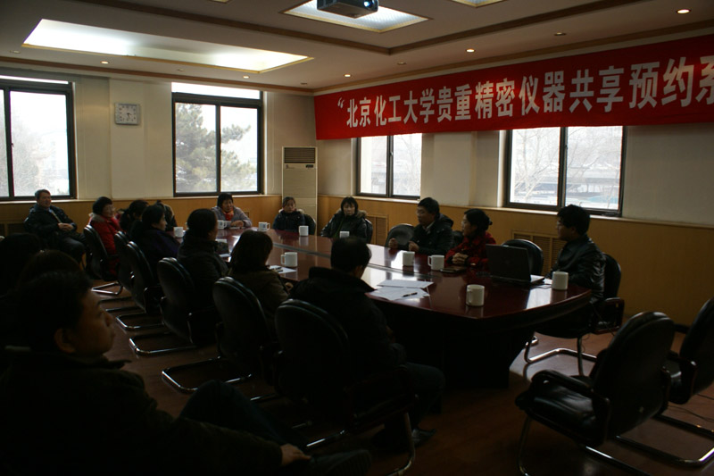 2009年12月23日下午,“北京化工大学贵重精密仪器共享预约平台”正式启动仪式在办公楼228举行。仪式由任新钢副校长主持,化工学院、材料学院、理学院、生命学院的行政副院长、国资处相关人员以及首批加入预约平台的9个测试单位的设备管理人员参加了会议。