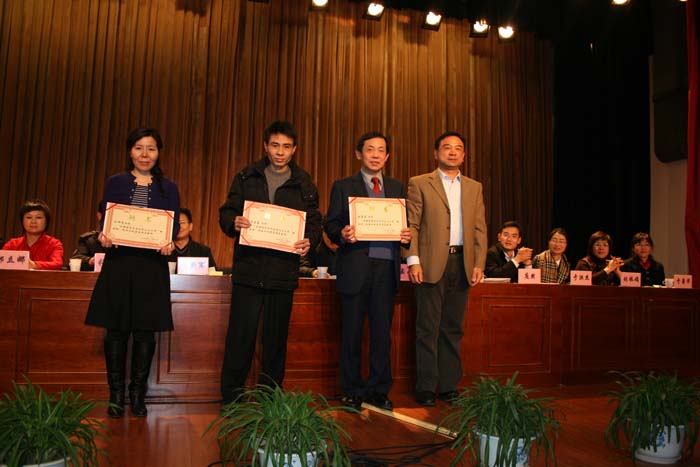 随后,罗伟老师宣读了《北京化工大学关于表彰2008-2009学年先进班集体、三好学生和优秀学生干部的决定》,王小健老师宣读了《北京化工大学关于表彰2009年学生社会实践先进集体和先进个人的决定》和《关于表彰2009年度信息上报先进单位和优秀信息员的决定》,张凤元老师宣读了第五届“挑战杯”课外学术科技作品竞赛获奖名单。与会领导为获奖集体和个人颁发了证书。