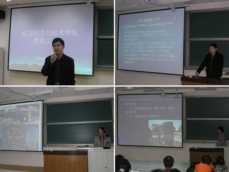 为进一步了解国际教育教学趋势和人才培养模式,转变观念、统一认识,开拓创新,以高级研究学者身份出访一年,近期从美国卡耐基梅隆大学访问归国的自动化系李宏光教授、英国伦敦国王大学访问归国的计算机系赵瑞莲教授分别介绍了美国、英国的教育机制、学术团队、研究生教育与科学研究以及他们自身参加合作研究与国际学术交流的情况,信息工程系青年教师、在职博士生黄静雯介绍了在美国加州大学圣地亚哥分校访问学习期间在启发式教学、培养学生实践能力以及自身的学习研究等方面的情况。三位教师从不同的国家、不同的学校、不同的专业、不同的角度分别介绍了他们的所见所闻和切身体会。大家共同感受到平和快乐的心态、主动塌实的作风、严谨和谐的氛围、开拓创新的精神是事业发展的重要基础。