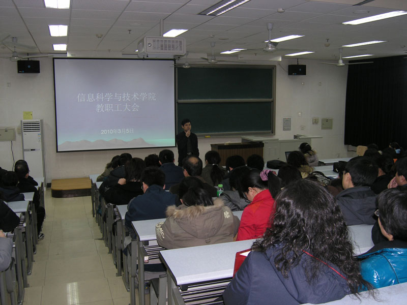 3月5日下午,为全面落实学校教育教学工作会议精神和今年学校与学院的重点工作,信息学院在科102召开全院教职工及博士生大会,会议由院长朱群雄教授主持,共有140余名师生参加了会议。