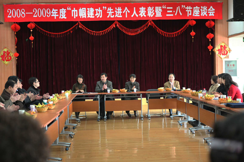 3月8日下午,我校教职工活动中心洋溢着浓浓暖意,我校2008-2009年度“巾帼建功”先进个人表彰暨“三·八节”座谈会在这里隆重举行。校党委书记王芳、副书记兼工会主席王同奇出席会议,各分党委(党总支、直属支部)书记、各分工会主席、2008-2009年度“巾帼建功”先进个人共40余人参加了座谈会。会议由校工会常务副主席苏建茹主持。