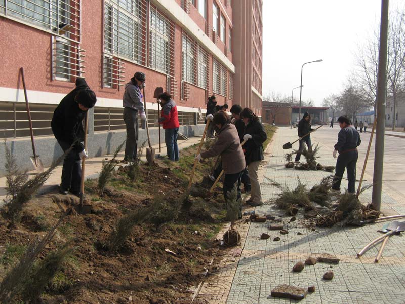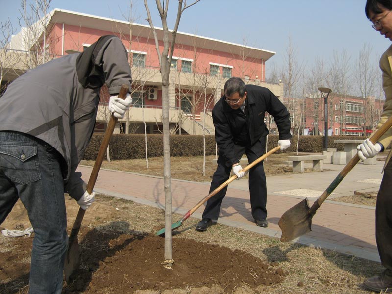 领导们的辛勤劳动为校园绿化再添一片新绿。北京化工大学北校区2001年大规模绿化植树以来,校区内所有的乔灌木都是历届领导每年植树日活动亲手栽植,现已由当年的小树长成了参天大树,我们相信有各级领导的支持和参与,校园的绿化将会越来越好。