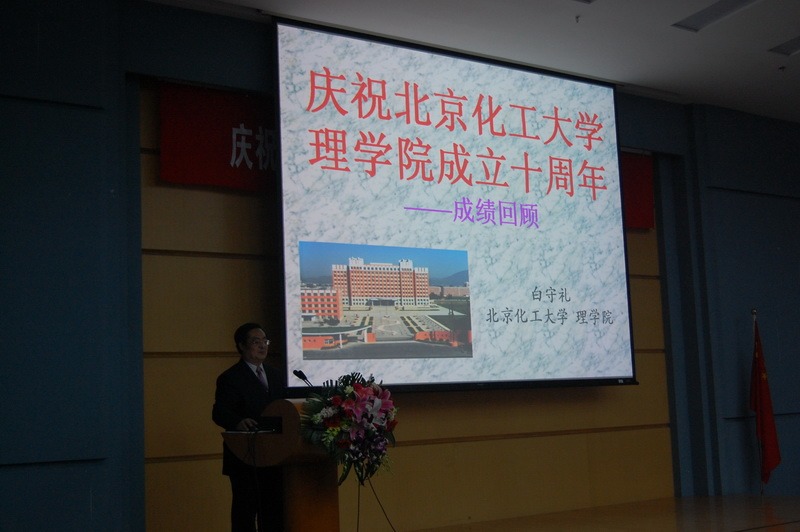 理学院分党委书记白守礼教授代表学院做了十年工作总结。他回顾了理学院十年来的发展历程以及在学科建设、科学研究、教学改革、师资建设、学生工作、社会服务工作各方面所取得的累累硕果,并对学院未来发展做了展望。