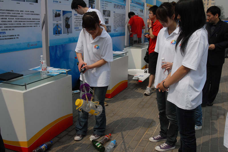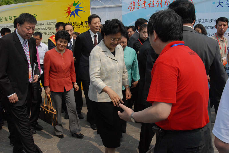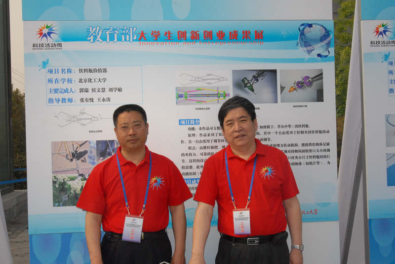 作为活动周开幕式重要内容之一的“2010年全国大学生创新创业成果展”也同时在首都博物馆北广场亮相。由成果展组委会从全国17所高校精选出的的25个项目参加了展示。该展览参展项目分为创新性实验计划、电子设计竞赛、智能汽车竞赛、机械创新大赛、节能减排竞赛、挑战杯大赛、创业典型案例等五大类别。作为全国大学生机械创新大赛的唯一代表,我校“饮料瓶捡拾器”项目被推荐参展,指导教师张有忱、王永涛率项目组成员代表出席。开幕式后,刘延东国务委员和万钢、李学勇、邓楠等领导在参观大学生创新创业成果展时也饶有兴趣地在我校展台前观看了作品演示。
