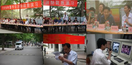 为学习贯彻《中华人民共和国消防法》和《高校消防安全管理规定》,根据教育部、市教委、教育工委关于创建平安校园的工作要求,全面提高大家的消防安全意识,增强发生火灾时的自救逃生能力,2010年5月21日下午3点,图书馆与保卫处共同举办了消防安全疏散演习,王贵副校长任总指挥,张明德馆长和许运清处长任副总指挥。学校各分党委、总支、直属支部及校工会、研究生院、学工办与国际交流合作处的相关安全负责人应邀到达疏散演练现场观摩演习,图书馆全体教职工及物业人员参与了此次活动。