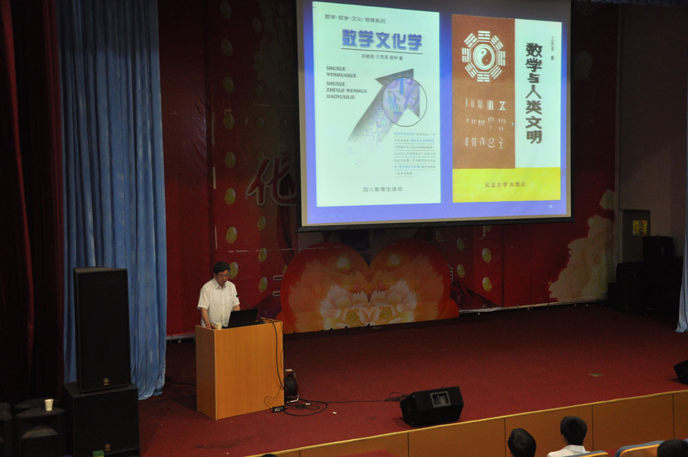 顾沛教授首先向全体同学介绍了数学文化的悠久历史和现阶段的发展状况,带领大家从对数学文化侠义的理解中走了出来。随后,他分别从数学文化一词的使用、数学文化的内涵、数学文化和数学素养事例三个方面对数学文化进行了深入浅出的讲述与分析。他指出,数学文化的内涵不仅是单纯字面上的理解,更包括社会对人们数学素养的重视以及数学素养对大家生活的影响,并从有限与无限、变换的方法、类比的方法、“变中有不变”等四个方面为同学们举例。在讲座过程中,顾沛教授多次与同学们进行现场的互动,不断启发和拓展着同学们的思路,激发了同学们对数学素养的极大热情。大家踊跃回答顾教授的问题,并得到了顾教授的肯定及在座同学的热烈掌声。最后,顾沛教授把其主编的 “数学文化”( 普通高等教育十一五国家级规划教材)赠给了北区学生。