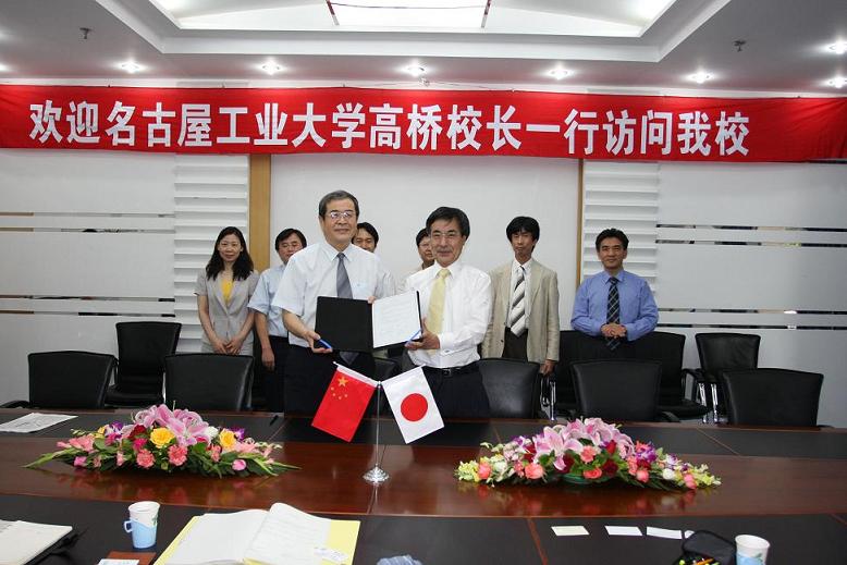 我校与日本名古屋工业大学于2005年2月在日本签署了校级合作协议。此次访问是高桥先生2010年4月出任校长以来的首次出访。会谈中,双方首先对五年来两校在相关领域合作开展情况以及成果进行回顾和总结,并就今后五年的双方的深层次的合作与交流进行了充分的研讨。最后,双方就在各自学校设立办事处签订了意向书。