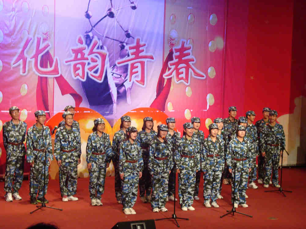 晚会以“铭记军训,立志成材”为主题,首先通过视频向同学们展示了军训十四天的欢乐与汗水。由09级同学自编自导自演的军训话剧真实再现了材料学子在八达岭军事训练基地永不言弃、坚持不懈的奋斗历程。以军训为题材的相声、舞蹈、歌曲仿佛又将军训的不屈精神和美好记忆从同学们的脑海中唤醒。晚会的尾声,我院军训标兵代表对我院的军训成果做了回顾并发表了倡议,号召同学们发扬军训精神,深化军训成果,改掉生活陋习,培养坚韧品格,做优秀的化大青年。丁老师发表感言说,材料学院09级同学在军训中取得了可喜的成绩,这是材料学院的骄傲,是对所有同学努力付出的肯定,希望同学们在以后的日子中,将军训中养成的不屈精神和优秀品质带到学习中去,带到生活中去,带到以后的工作中去,让军训精神的宝贵财富伴随同学们一生的成长!最后,全体材料学院的同学在写有“铭记军训树报国之志 修身立行成栋梁之材”的横幅上庄重的写下了自己的名字。