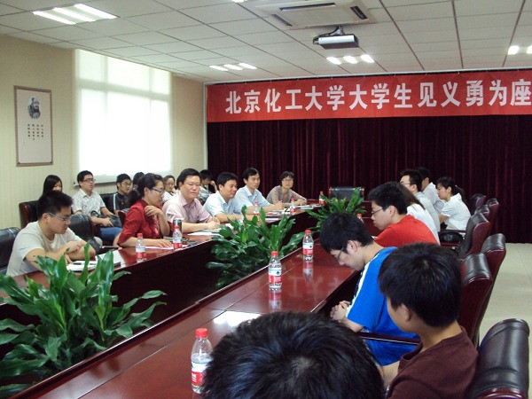 会议伊始,于景华老师和刘军锋老师分别介绍了理学院和生命学院近期涌现的两起见义勇为事件:6月22日理学院应化0604班学生吴宏成从滚滚车流中救下轻生女子,6月6日生命学院生工0702班学生张亚丽奋力追捕入室盗窃女贼。随后,主持人采访了张亚丽同学,张亚丽同学表示当看到同学的财产被侵犯,自己发自本能的去追逮小偷,虽然后来想起来有些害怕,但是若再遇到类似事件的时候,她仍会坚定的挺身而出。保卫处陶贞旭老师充分肯定了吴宏成同学和张亚丽同学在见义勇为行为中展现出的崇高品质和精神,此次抓获入室盗窃团伙后校园盗窃案件大幅减少,充分反应了见义勇为行为对校园正气形成的积极推动作用,同时陶老师也提醒同学们在保护人民和集体财产安全的同时也要学会保障自身安全。