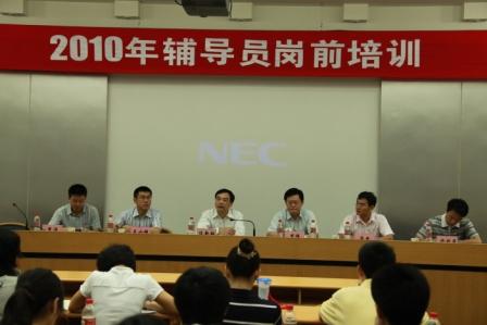 在培训动员会上,校党委副书记兼副校长任新钢向2010级全体辅导员详细介绍了我校学生工作特色和辅导员队伍建设状况。他指出,我校辅导员队伍始终保持着“特别能吃苦、特别能战斗、特别能奉献”的优良传统,在各项工作中取得了优异的成绩,他还就我校在探索改善辅导员队伍结构、提高辅导员待遇方面出台的具体措施以及当前和今后一段时期在推动辅导员队伍专业化、专家化建设的发展思路做了讲解。最后,任校长对新辅导员提出了几点要求,希望大家把辅导员工作作为自己的神圣事业,投身其中,奉献才华,要尽快完成辅导员职业的角色转变,要传承学校的优秀传统,求真务实,踏实工作,努力成为学生的人生导师和知心朋友。