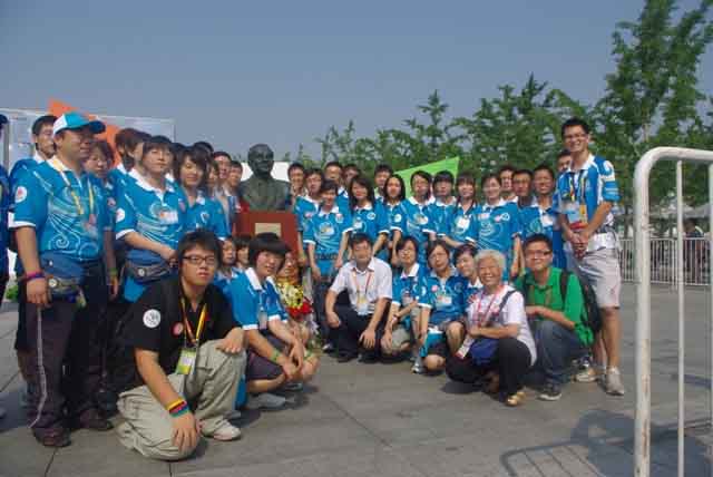 2010年8月8日,适逢北京奥运会开幕两周年及首届北京奥运城市体育文化节帷幕之际,国际奥委会终身名誉主席萨马兰奇先生的铜像揭幕仪式于鸟巢前方的中心广场隆重举行。为缅怀前国际奥委会主席萨马兰奇先生,共青团北京市委员会副书记邓亚萍携我校30余名志愿者向萨翁铜像献花,以纪念他在北京2008年奥运会的成功举办所做出的贡献。