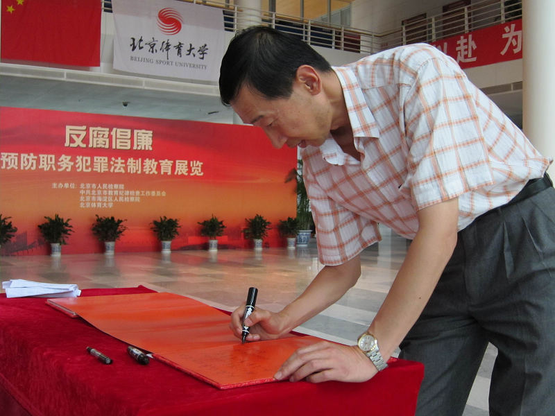 该展览由市人民检察院、市教育纪工委、海淀区人民检察院和北京体育大学联合主办,分为预防职务犯罪法制教育展和工程建设领域预防职务犯罪展两部分。