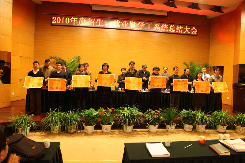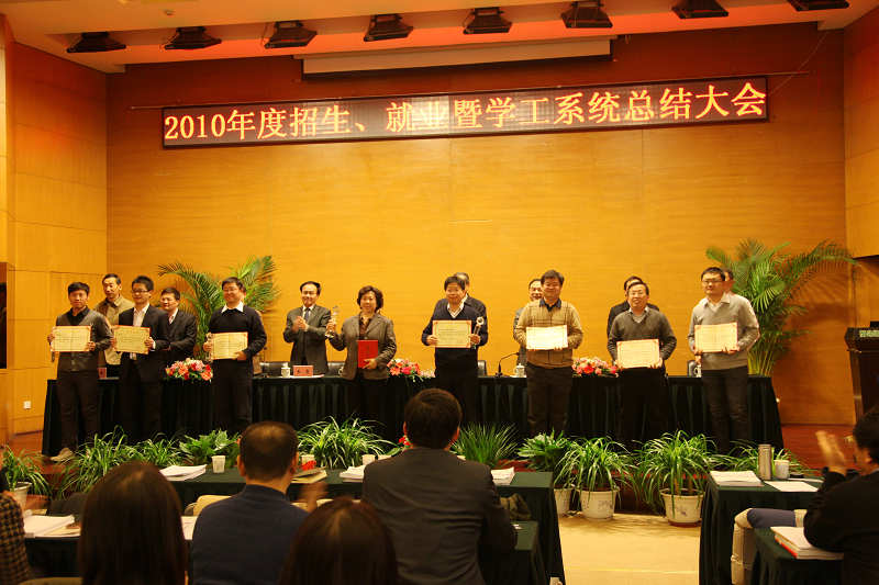 2011年1月5日,我校隆重召开2010年度招生、就业暨学工系统总结大会。党委书记王芳、校长王子镐、副校长王贵、党委副书记兼副校长任新钢、党委副书记王同奇、副校长陈标华、副校长谭天伟、副校长李显扬、党委副书记关昌峰,学校有关部处、各学院领导以及招生先进个人、班主任代表、全体辅导员共计200余人参加了会议。