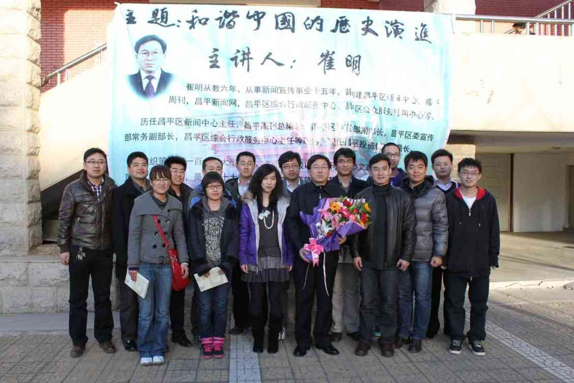 3月9日下午,应学工办的邀请,昌平区投资促进局局长、中国民族报社战略顾问崔明在北功厅为北区师生作了一场以“和谐中国的历史演进”为主题的历史文化报告。报告会由北区办副主任庞然老师主持。