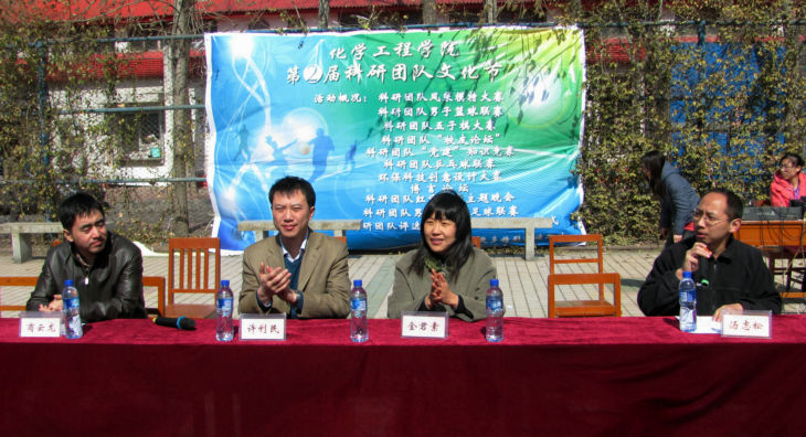 3月15日中午,北京化工大学化学工程学院第二届科研团队文化节在东篮球场开幕。研究生院副院长许利民、化学工程学院党委副书记商云龙、研究生党总支书记金君素、科研团队教师代表、校研究生代表以及学院16个科研团队的同学们出席了开幕式。开幕式由研究生会指导老师汤志松主持。