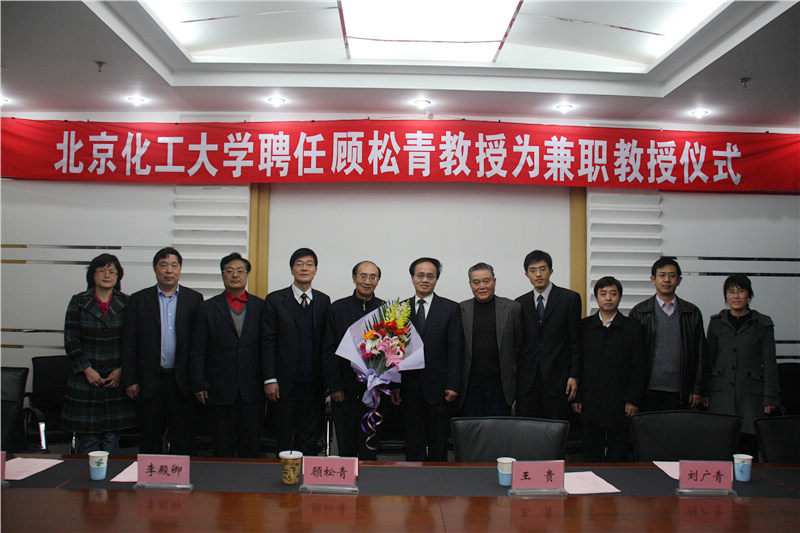 首先万平玉教授向大家介绍了顾松青教授的履历及研究成果,接着王贵副校长为顾松青教授颁发兼职教授聘书、并由学生代表为顾松青教授献花并佩戴校徽,王贵副校长代表学校对顾松青教授受聘为我校兼职教授表示热烈的欢迎和诚挚的感谢,最后,顾松青教授发表了热情洋溢的讲话,表示能成为北京化工大学兼职教授感到非常荣幸,希望在以后与化工大学的老师和同学的交流合作中,能为化工大学做一些实际的工作,为学校科研的进一步发展做出应有的贡献。顾松青教授在言谈之间体现的谦虚、严谨的治学与科研态度,让在座的师生感受到了大师的风范。聘任仪式在全体与会领导与顾松青教授进行愉快的合影留念中圆满结束。