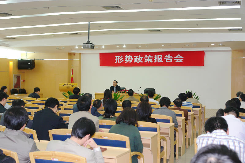 5月6日下午2:00在会议中心多功能厅,教育部思政司杨振斌司长为我校中层干部和辅导员做了一场有关目前形势和我们面临任务的报告。全体校领导出席,王芳书记主持了报告会。