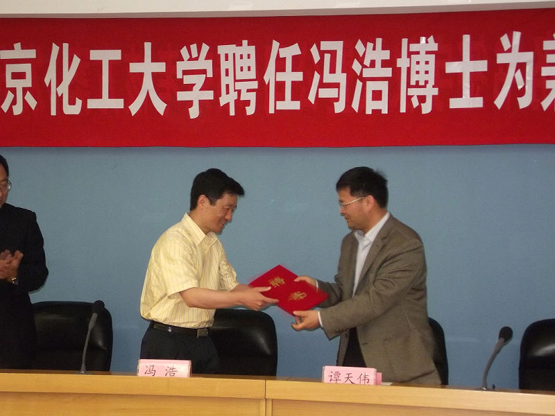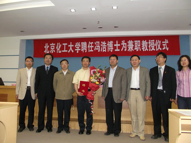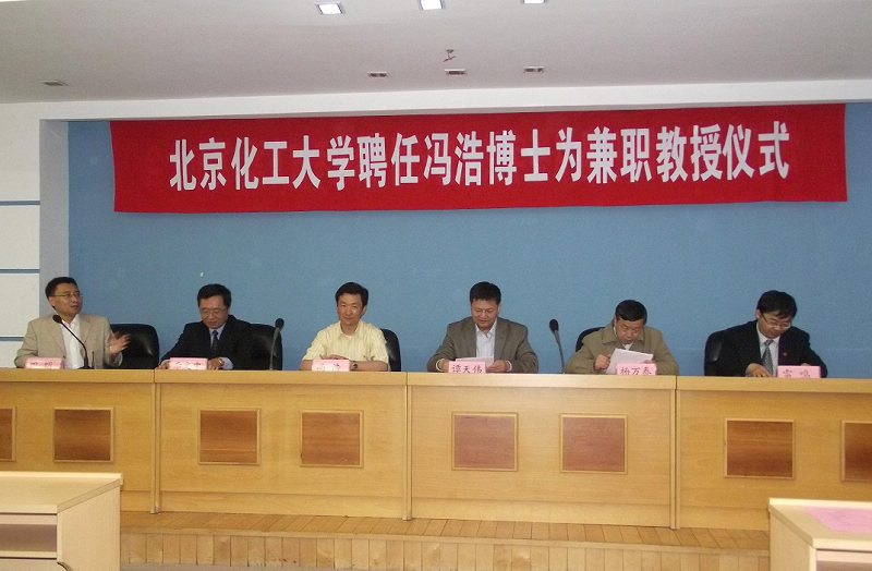 2011年5月11日上午9点,我校聘任冯浩博士为兼职教授仪式在逸夫会议中心中心会议室隆重举行。出席此次聘任仪式的有北京化工大学谭天伟副校长,材料科学与工程学院杨万泰院长,人事处李文中处长,国际交流与合作处雷鸣副处长,以及材料学院田明教授、刘杰教授等师生代表。 聘任仪式由田明教授主持。
