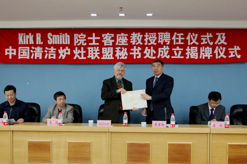 2011年5月17日上午,我校聘任Kirk R. Smith院士为客座教授仪式在逸夫会议中心会议室举行。出席聘任仪式的有北京化工大学副校长李显扬,化学工程学院副院长李春喜,发展规划处处长聂俊,国际交流与合作处副处长雷鸣,人事处副处长刘广青、中国农村能源行业协会的专家和领导以及我校相关教授和学生。聘任仪式由李春喜教授主持。