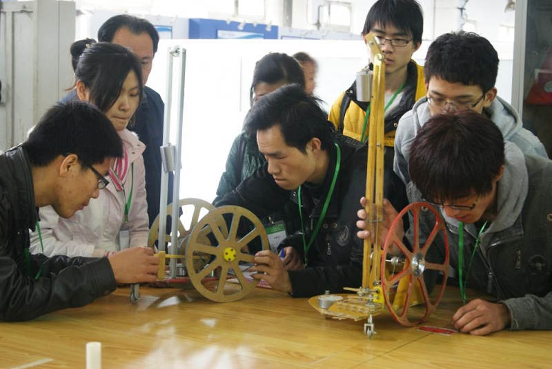 我校在准备时间仅有3个星期的时间内,便有10个小组完成了小车的设计及加工制作。此次派出的4个代表队,在两天的激烈比赛中,面对生疏的比赛环境,熟练完成了导向轮的现场加工、小车装配和调试、评委答辩等环节。