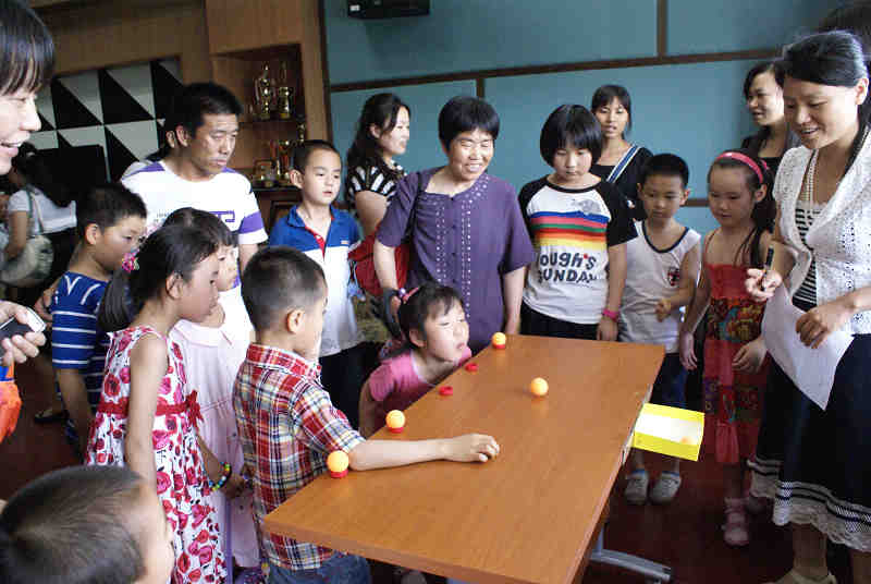 下午2:00,在校党委副书记、工会主席王同奇表达了对孩子们的美好祝愿后,孩子们开始进行比赛和表演。本次趣味运动会设有10个项目,有2岁以下孩子的爬行表演,有5岁以下孩子的拍球表演,还有跳绳、夹玻璃球、网球投准、吸乒乓球、吹乒乓球、套圈、家长与孩子一带一跳绳、接球等项目的比赛,孩子们玩得兴高采烈,家长们也都参与活动或在旁边认真地指点,气氛热烈而温馨。活动结束后,每位小朋友都领到了一份节日礼物。