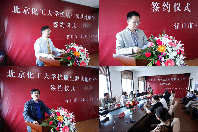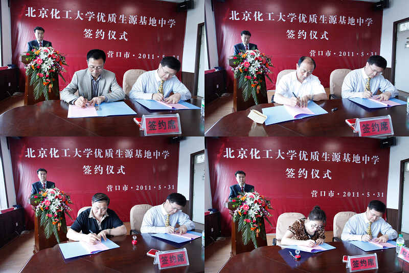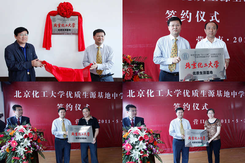 为了进一步加强我校招生宣传工作,扩大我校招生的影响力,提高我校知名度,5月31日,在谭天伟副校长的带队下,招生办主任赵静和材料学院副院长李齐方赴辽宁省营口市高级中学、营口开发区熊岳高级中学、盖州第一高级中学和大石桥市高级中学,参加了两校“优质生源基地”签约挂牌仪式。此次挂牌仪式得到了营口市政府的高度重视,营口市副市长高炜、市政府秘书长田华、市委组织部副部长、市人才办副主任王卫兵、市教育局局长谢连科、市教育局副局长单飞等出席挂牌仪式。