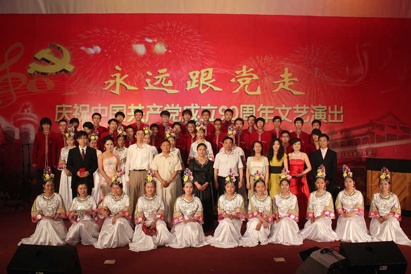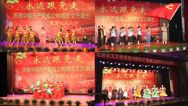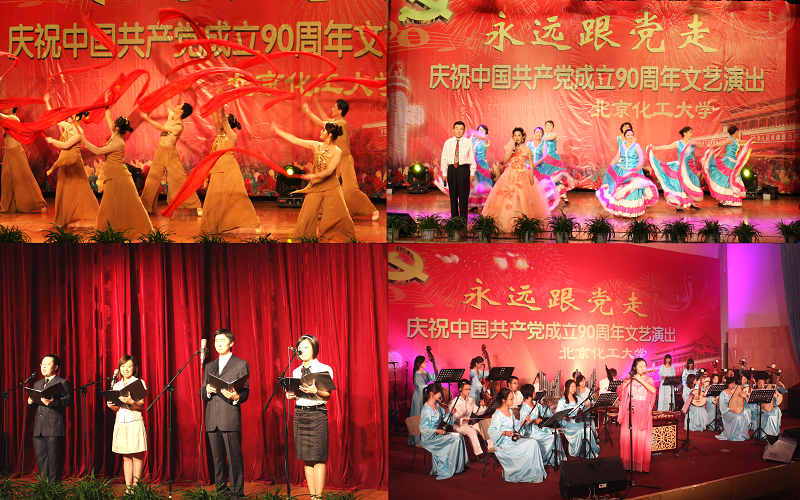 庆祝中国共产党成立90周年“永远跟党走”大型文艺演出北校区专场,7月1日晚七点半在北功厅举行。校党委副书记兼副校长任新钢以及相关部处的领导和老师与北校区学生共同观看了演出。