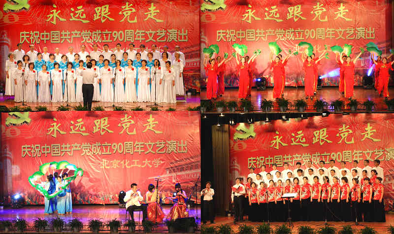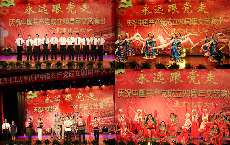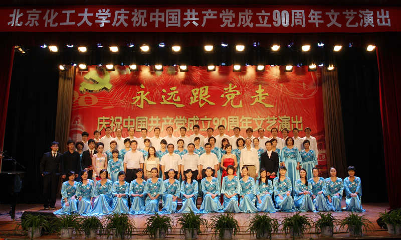 7月1日下午,北京化工大学庆祝中国共产党成立90周年文艺演出在东校区科学会堂举行。党委副书记兼副校长任新钢,党委副书记王同奇,副校长陈标华等校领导,与校机关各部处、各职能部门、各学院领导及师生党员代表一起观看了演出。