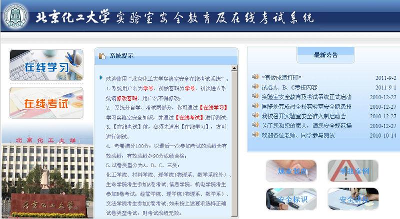 实施安全准入制是指学生必须经过规定时间和规定内容的安全教育、自主学习,并经考核合格后才能进入实验室学习的一种制度,是我校为加强实验室安全管理推出的新举措。为了保证安全准入制真正收到实效,国资处和有关部门进行了精心规划和组织。首先,由各学院在研究生入学教育期间给学生进行深入细致的安全宣讲;其次,由国资处在自主开发的“实验室安全教育及考核系统”中收集整理丰富多彩的安全教育材料供学生自学,考题根据各学院学科特色专门订制,必考题占50%,既保证了考试的针对性,又保证了通过率;第三,学生阅读考卷前必须观看3分钟的安全案例PPT,选取各高校有代表性的安全事故图片,希望用极具冲击力的视觉印象提高学生的安全意识;最后,考试成绩达到90分的学生可打印“实验室安全准入证书”,导师签字后交学院和实验室备案,藉此促进广大教师对安全工作的重视。