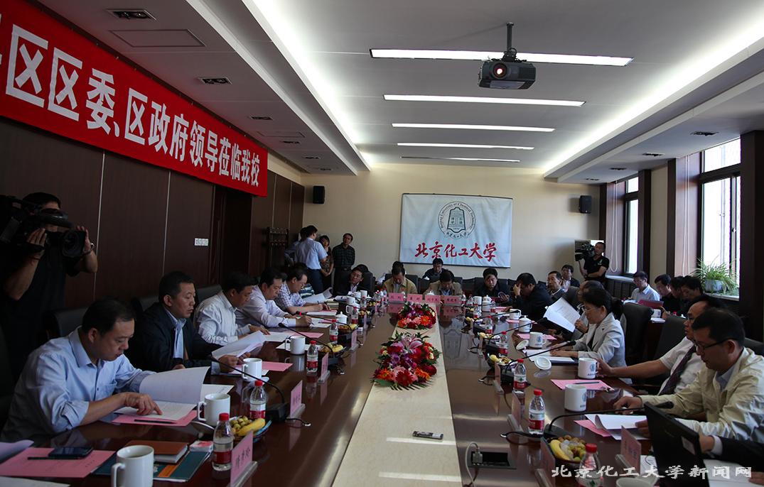 随后,侯君舒书记一行与我校领导进行了亲切会谈。学校领导就学校整体发展情况向侯书记一行做了详细的介绍。侯君舒书记、金树东区长对我校长期以来对昌平区经济社会发展做出的积极贡献表示感谢,并表示昌平区区委、区政府将继续创造有利条件支持学校各项事业的发展。希望区校双方本着互惠互利、积极交流、共同发展的原则进一步密切联系、加强合作、实现共赢,同时希望我校能充分发挥自身科技优势,为促进昌平区经济社会发展做出更大的贡献。