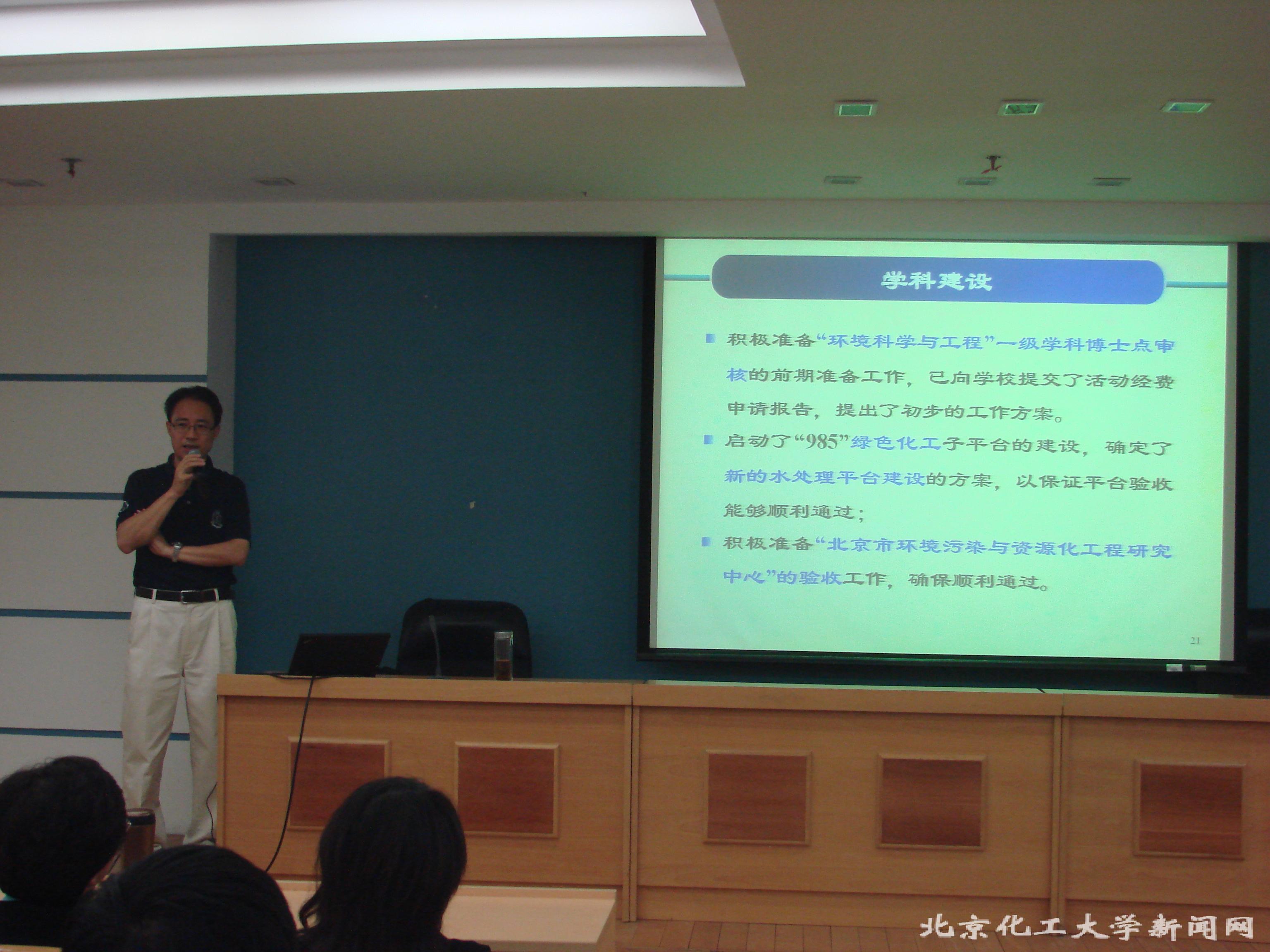 陈建峰院长向全院教师介绍了学院新一届领导班子和各组织机构的成员组成。他对上一届领导班子的工作给予了充分肯定。并指出,今年是“十二五”规划的开局之年,新的行政领导班子将团结奋进、开拓创新,为学院的“十二五”的建设与发展开好局、起好步。学院要以构建创新型人才培养体系,打造一流学科和创新平台为指导方针,以“人才培养是根本、学科建设是龙头、体系创新是关键、队伍强化是保障”为指导思想,以实施体系创新工程、创新人才工程和安康工程为具体措施,推动学院事业科学发展。